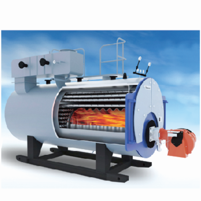 采用臥式三回程濕背結(jié)構(gòu),改善鍋爐運(yùn)行環(huán)境,提高鍋爐效率和使用壽命;采用有良好膨脹性能的波紋爐膽與錐形爐膽的結(jié)合爐膽,爐膽尺寸與火焰相吻合,煙氣流通面積依次減小,使煙氣等速流動,保證高溫?zé)煔庠跔t內(nèi)的熱交換時(shí)間,達(dá)到傳熱效果;采用與鍋爐完全匹配的高性能燃燒機(jī),進(jìn)行全面自動調(diào)節(jié),使燃燒充分,節(jié)省燃料,減低污染;采用高保溫性能的超細(xì)玻璃棉,散熱損失更;采用智能化節(jié)能控制系統(tǒng),對鍋爐及供水系統(tǒng)進(jìn)行控制,結(jié)合不同負(fù)荷調(diào)節(jié)燃料供給,更加節(jié)能。