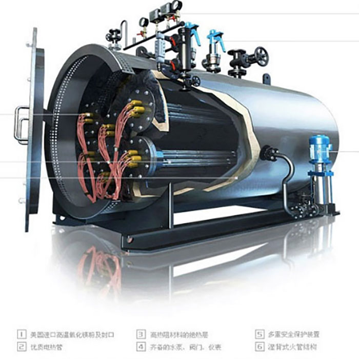 電蒸汽鍋爐的優(yōu)勢在于沒有燃燒室,無需安煙囪,所以不必考慮熱損失,熱效率接近98%,且能滿足嚴格的排放和防火標準。其采用步進式分時投入法控制電熱元件,方便用戶靈活調(diào)整鍋爐發(fā)熱量。鍋爐啟動、停止速度快,運行負荷調(diào)節(jié)范圍大,操作簡單。使用優(yōu)質(zhì)的電器元件,確保產(chǎn)品的使用壽命。鍋爐使用配件,均選用國內(nèi)外優(yōu)質(zhì)產(chǎn)品,并經(jīng)試爐檢驗,保證了鍋爐的長期正常運行。